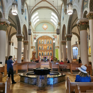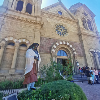 The morning was spent walking around the Santa Fe Plaza, known as the heart of the city, which dots museums, art galleries, and a variety of arts and crafts boutiques in adobe buildings. Overlooking the Plaza is the historic Cathedral Basilica of St.Francis of Assisi with a statue of Saint Kateri, the first indigenous American saint.